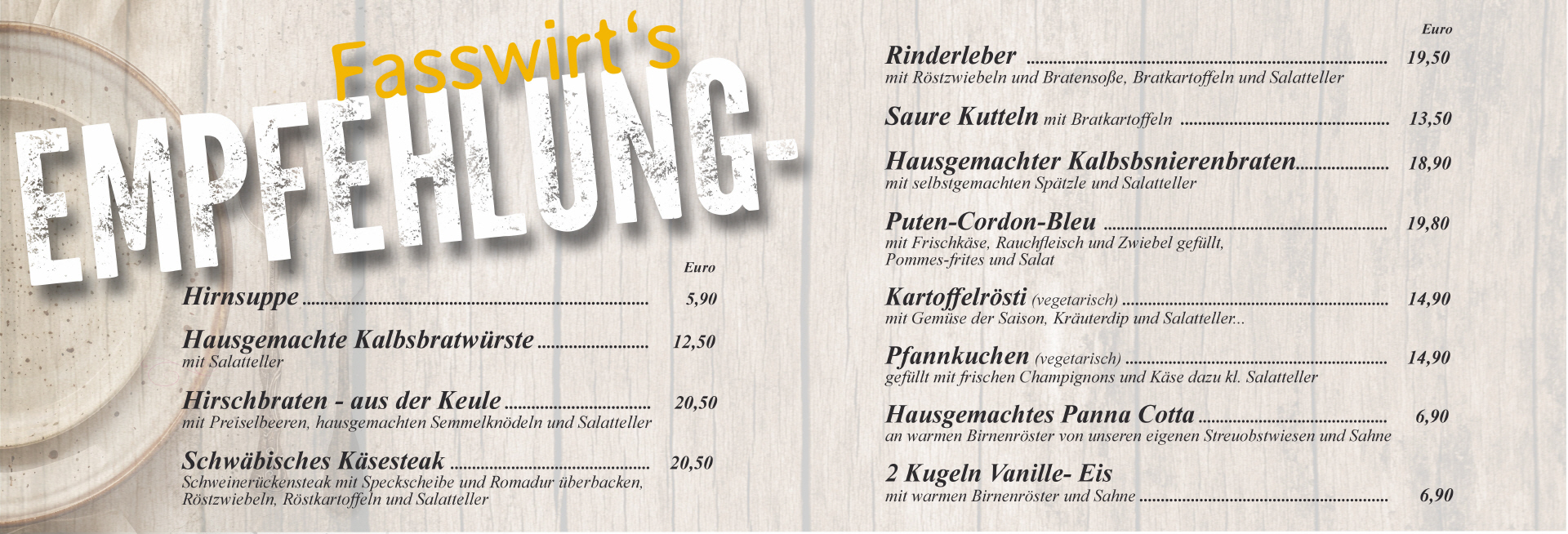 der Mittagstisch, sowie unsere saisonale Empfehlung